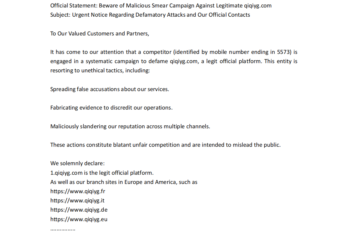 Official Statement qiqiyg.com